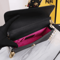 Ce sac à bandoulière en cuir baguette Fendace Fendi X Versace est fabriqué à partir de cuir de haute qualité, garantissant durabilité et longévité. Le matériau extérieur du sac est de couleur noire, ajoutant une touche d’élégance et de sophistication.