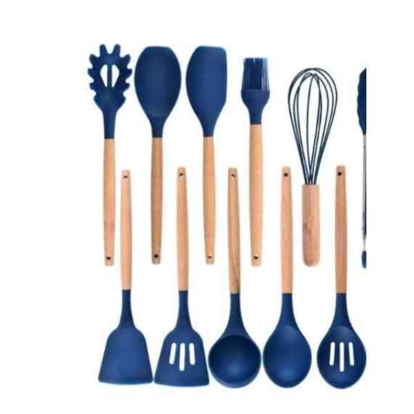 Set de louche en Silicone – Poignées en Bois – 19 pièces